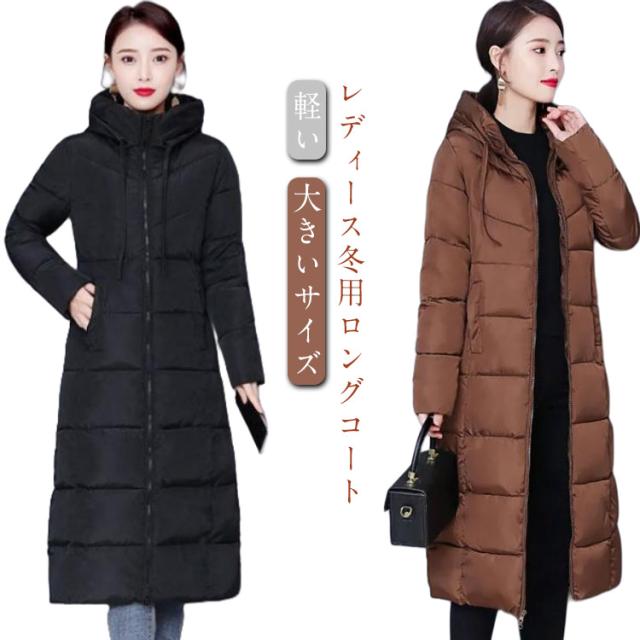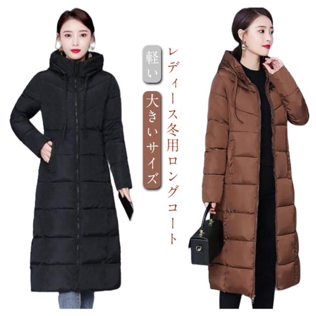 ロング丈 冬 膝下 大人女性 ロングコート ボリューム ベンチコート フード付き アウター 送料無料 冬 軽い あったか 大きいサイズ 無地 シンプル ジャケット 体型カバー おしゃれ 冬服 レディース 防寒 韓国風 暖かい マキシ丈 ロング丈 通勤