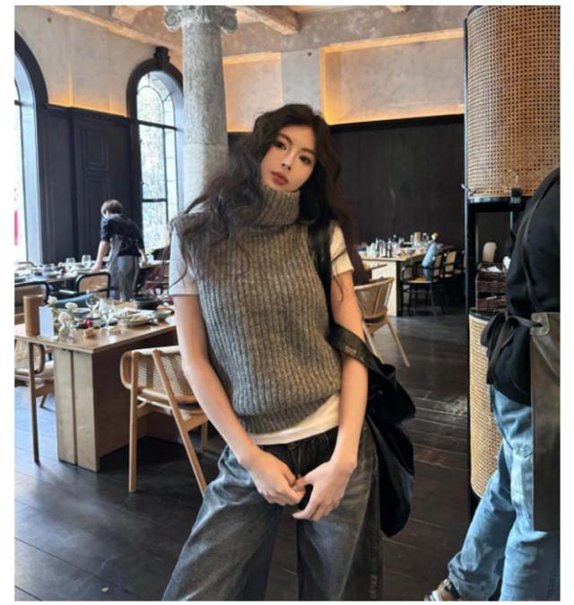 ハイネック トップス ニットベスト ニット コンパクト ベスト 厚手 タートルネック ニットトップス 30代 ノースリーブ あったか 冬 レディース プルオーバー ショート丈 レイヤード 重ね着 きれいめ 大人可愛い おしゃれ 通学 通勤 20代 シンプル 40代 50代 ニットベスト 無地