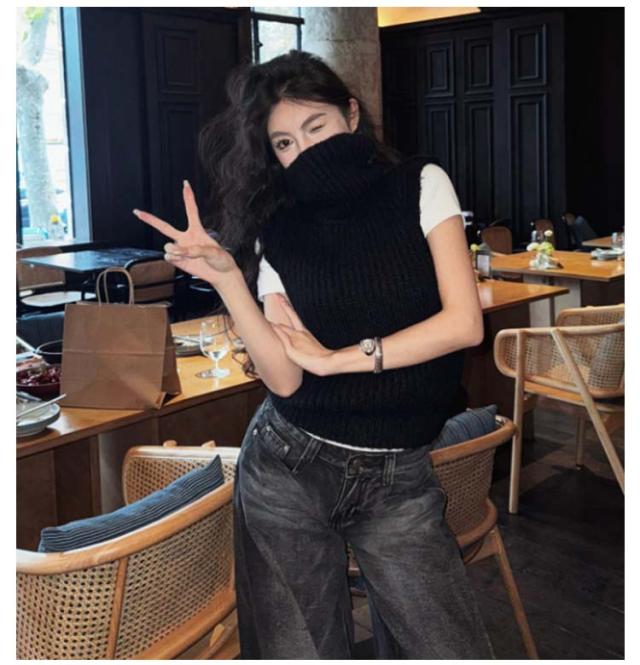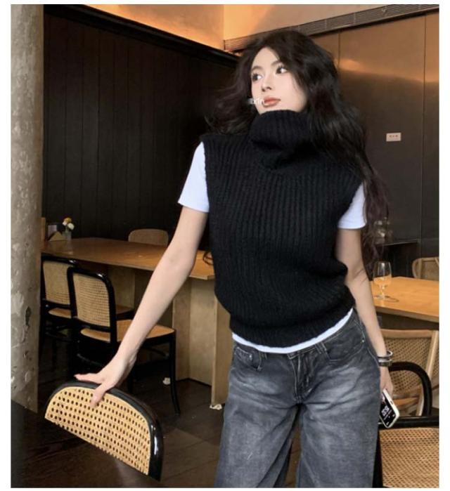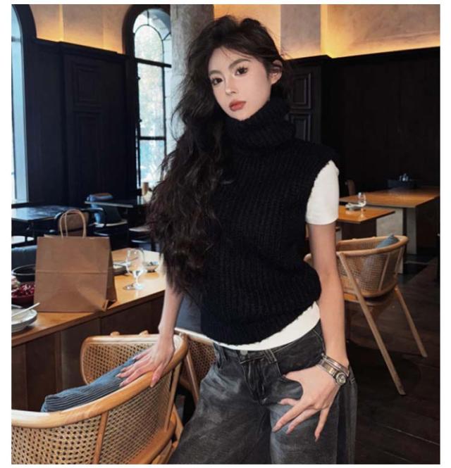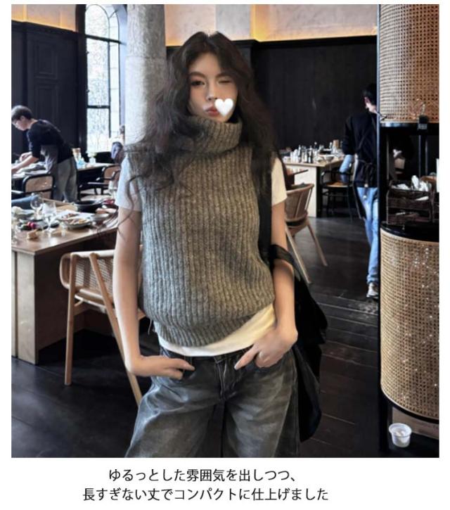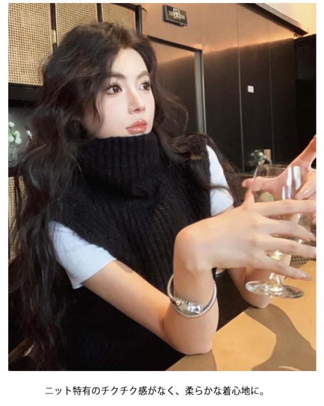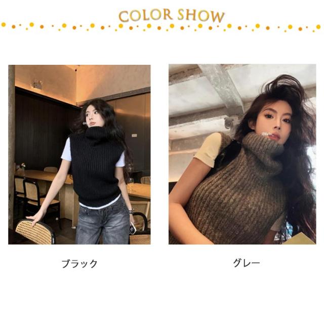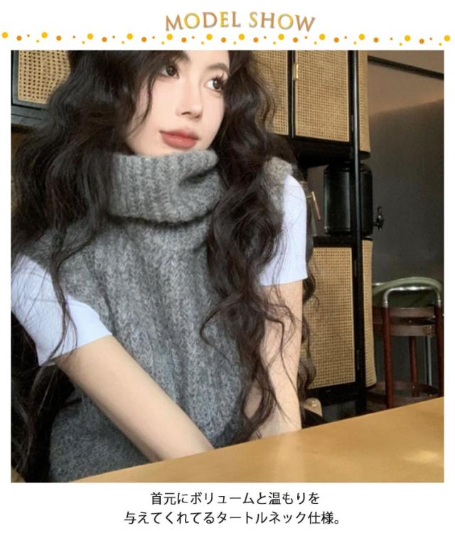 ニットベスト タートルネック ショート丈 ベスト ニット コンパクト ノースリーブ レディース 厚手 ニットトップス 冬 ハイネック 秋 きれいめ 重ね着 プルオーバー レイヤード あったか ニットベスト 大人可愛い おしゃれ 通学 通勤 20代 30代 40代 50代 シンプル 無地