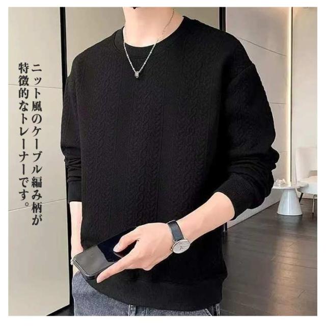 長袖 大きいサイズ メンズ トレーナー ケーブル柄 トップス トレーナー スウェット おしゃれ クールネック 無地 春 秋 冬 韓国 ファッション アウトドア