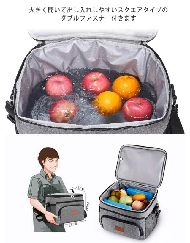 | 保冷性と保温性に優れ軽くて大容量なクーラーバッグです。 保温3-6時間、保冷6-12時間できます。 サイドメッシュポケット、フロントファスナー付きます。 肩掛けと手提げの2wayで使えます。 大きく開いて出し入れしやすいスクエアタイプのダブルファスナー付きます。 表地は撥水加工の厚手生地で長く愛用いただけます。 キャンプやアウトドア、スポーツや野外イベントに最適。 クッション性のある断熱材が入った保冷機能だから、お買い物やレジャーにぴったり! | |