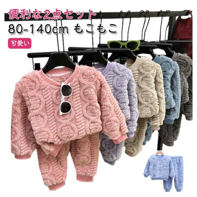 | 80-140cm もこもこ 便利な2点セット お揃いカラーがかわいいトップス&パンツ ぬくぬく便利な2点セット。 ウエストゴム ウエストはゴムでラクチン♪ 袖囗・足口もゴム入りで、きゅっとしっかり暖かい 優しい肌触り もこもこふわふわな厚手生地が心地いい | |