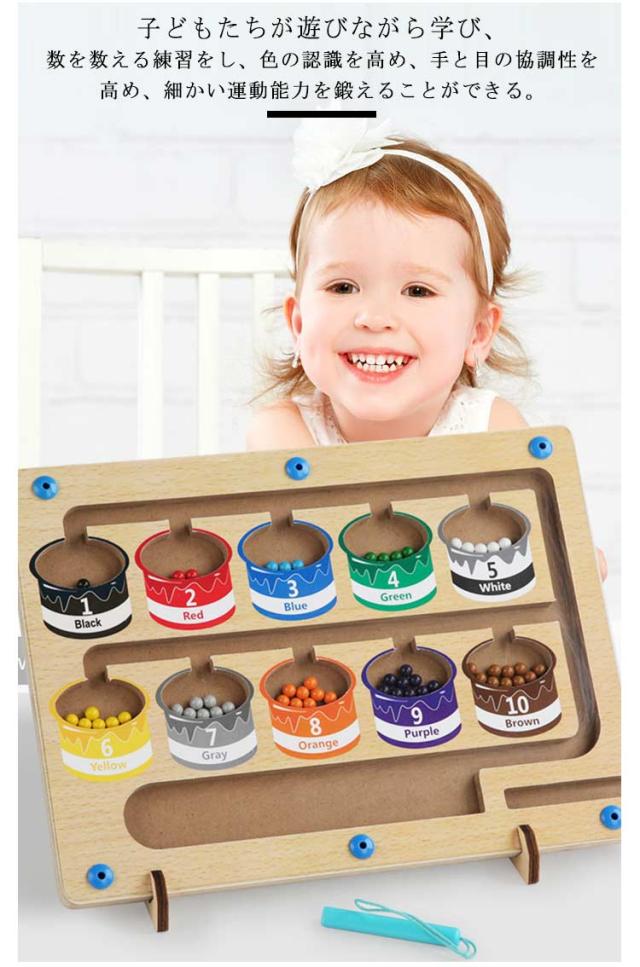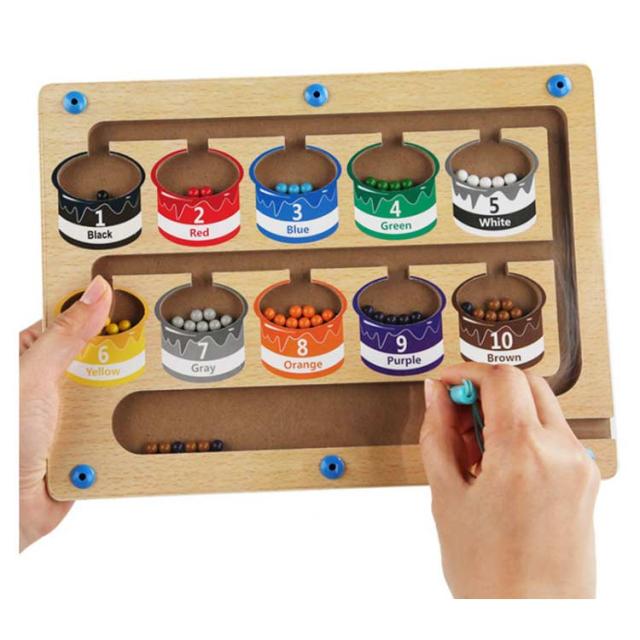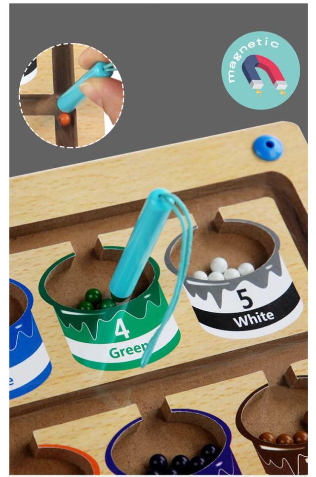 | 色を探したり、数を数えるためのマグネット式幼児用ゲーム。 木のおもちゃの迷路には、1〜10の数字を表す10個の「ペイントポット」と、 お子様が数を数えられるように10色の明るい色の65個のマグネットビーズが組み込まれています。 子どもたちが遊びながら学び、数を数える練習をし、色の認識を高め、手と目の協調性を高め、細かい運動能力を鍛えることができる。 | |