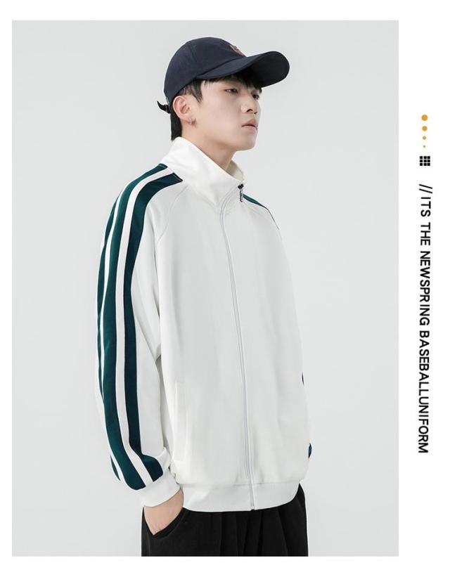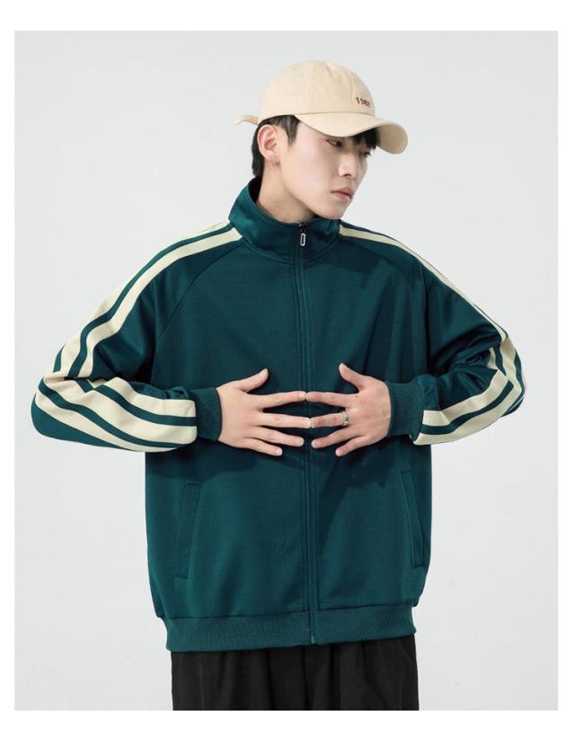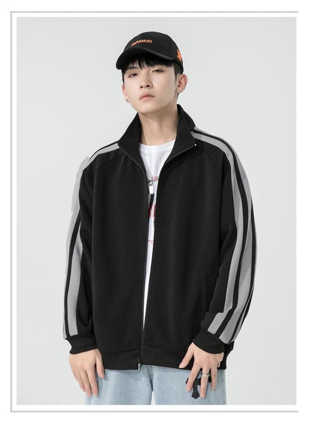 メンズ アウター フードなし 長袖 ジップアップ ジャージ ライン入り トレーナー 運動着 スタンダードジップジャケット パーカー 上 トップス スポーツウェア 無地 おしゃれ ジップアップ ゆったり カジュアル アメカジ ストリート 普段着 春秋 秋冬