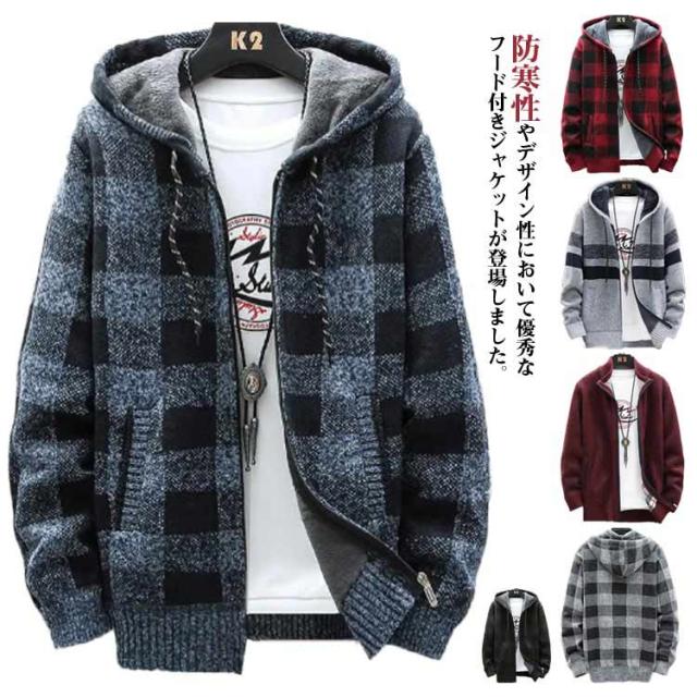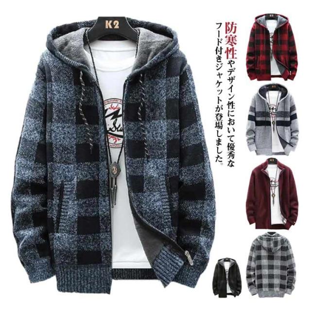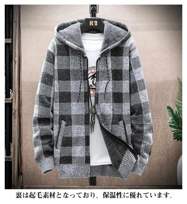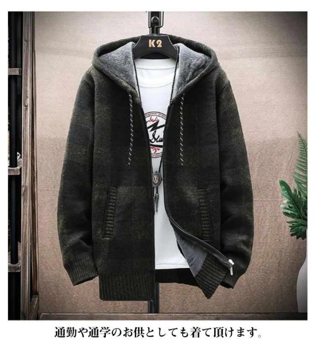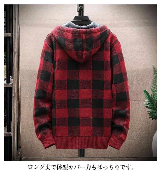 ニットカーディガン 防風 ロング丈 ジップアップパーカー ジャンパー ロングパーカー カジュアル 上着 メンズ フード付き 裏起毛 カーディガン あたたかい ブルゾン アウター お洒落 ジャケット ニットカーディガン 防寒 春 秋 冬 大きいサイズ ゆったり 送料無料