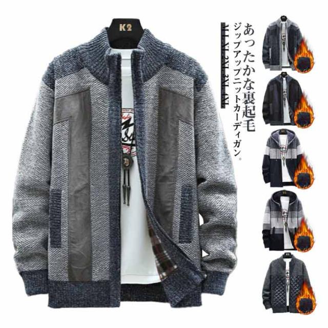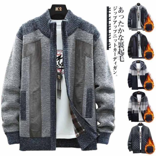 カーディガン 冬 春 ブルゾン ジップアップ カーディガン フード付き カジュアル 防風 アウター ニットジャケット ボア 裏ボア ロングパーカー 秋 メンズ 暖かい 秋冬 ビジネス ジャケット ニット おしゃれ 厚手 防寒 春 秋 冬 大きいサイズ