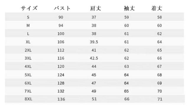 | サイズ | S M L XL 2XL 3XL 4XL 5XL 6XL 7XL 8XL |
