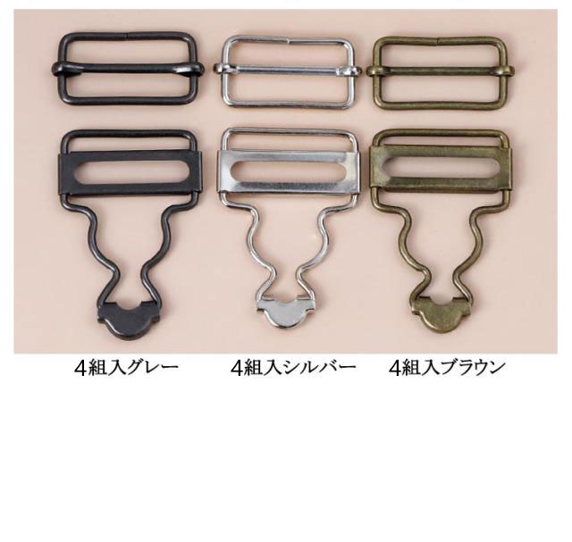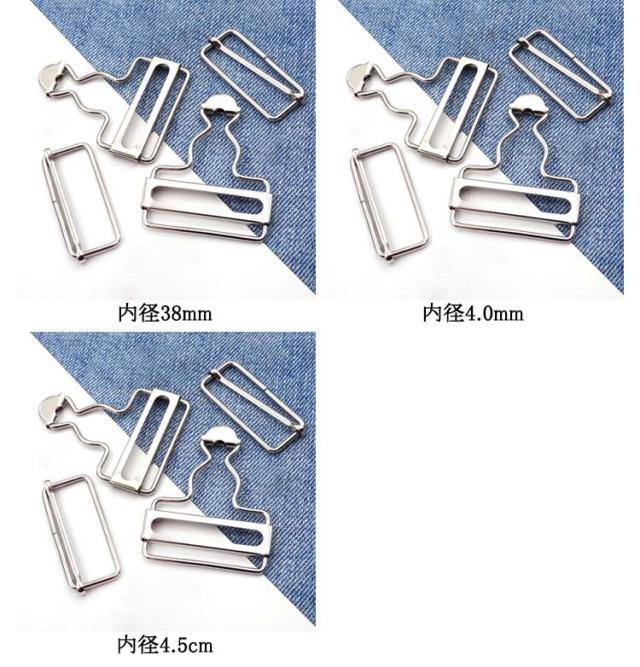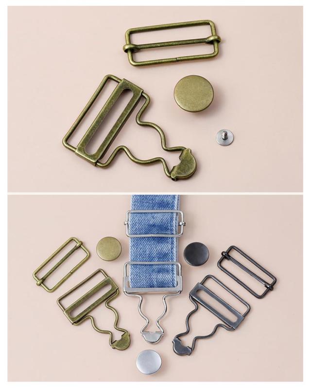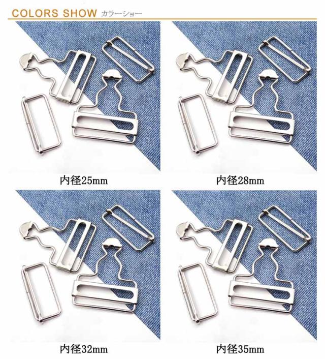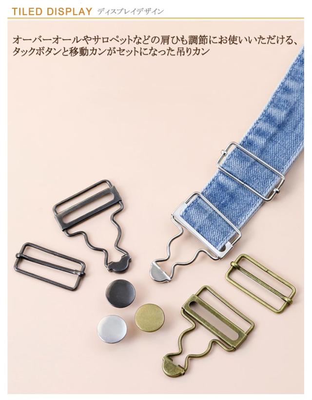 | 2組入!内幅3.5/2.8cm/3.2cm/3.5cm/3.8cm/4cm/4.5cm オーバーオールやサロペットなどの肩ひも調節にお使いいただける、 タックボタンと移動カンがセットになった吊りカン | |