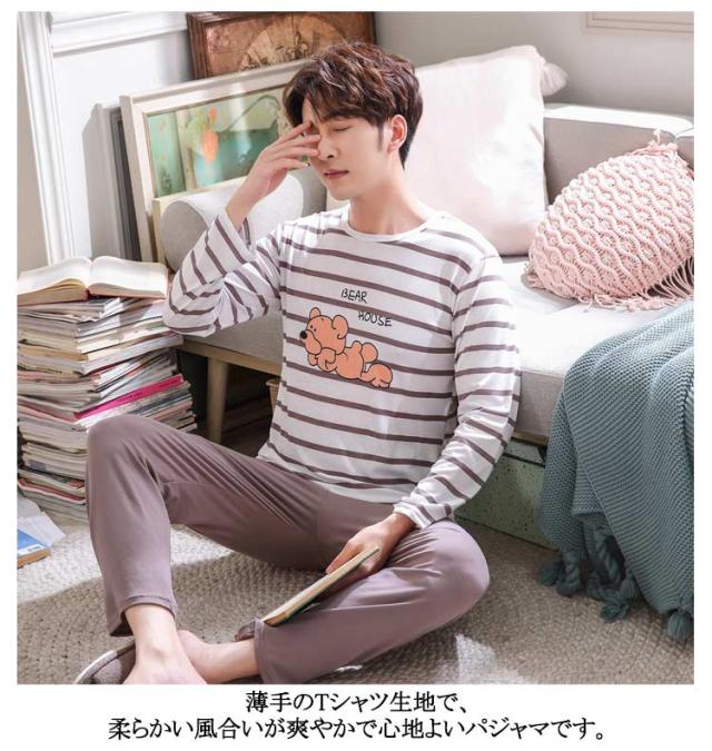 上下セット 柔らか メンズ 軽い 春夏秋 上下セット プレゼント 快適 パジャマ 春 長袖Tシャツ 夏 寝間着 ボーダー Tシャツ セットアップ ルームウェア 薄手 長ズボン 部屋着 シンプル 男性 父の日