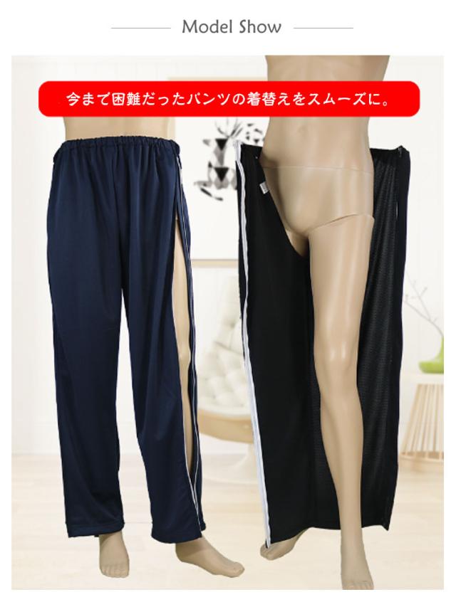 | M-2XL!介護用ズボン。両側にファスナーが付いているためフルオープンが可能です。 今まで困難だったパンツの着替えをスムーズに。そんな願いから生まれたのが、このパンツです。 着せられる人に親切な着替えさせやすい介護ズボンです。入院や治療にも活躍できます。 | |