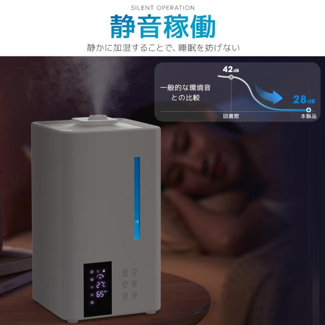 加湿器 8L大容量 ハイブリッド 超音波&加熱式 高出力 除菌機能付き 3段階湿度設定 自動OFFタイマー 静音設計 アロマ対応 省エネ対応 大面積対応