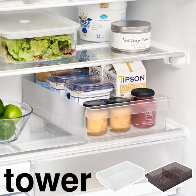 [ 冷蔵庫中収納ケース タワー L 仕切り付き ]山崎実業 tower 収納トレー 冷蔵庫整理 キッチン収納 冷蔵庫用ケース ストッカー 冷蔵庫内 引き出し 納豆パック 仕切り 整理 おしゃれ yamazaki 公式 ブラック ホワイト1477 1478
