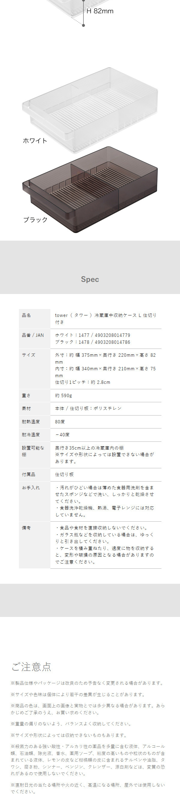 ■ 冷蔵庫中収納ケース タワー L 仕切り付き 1477 1478