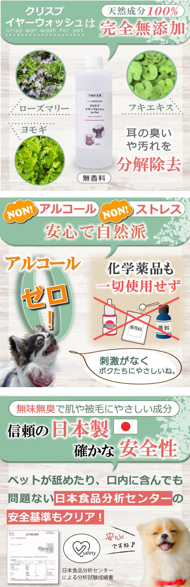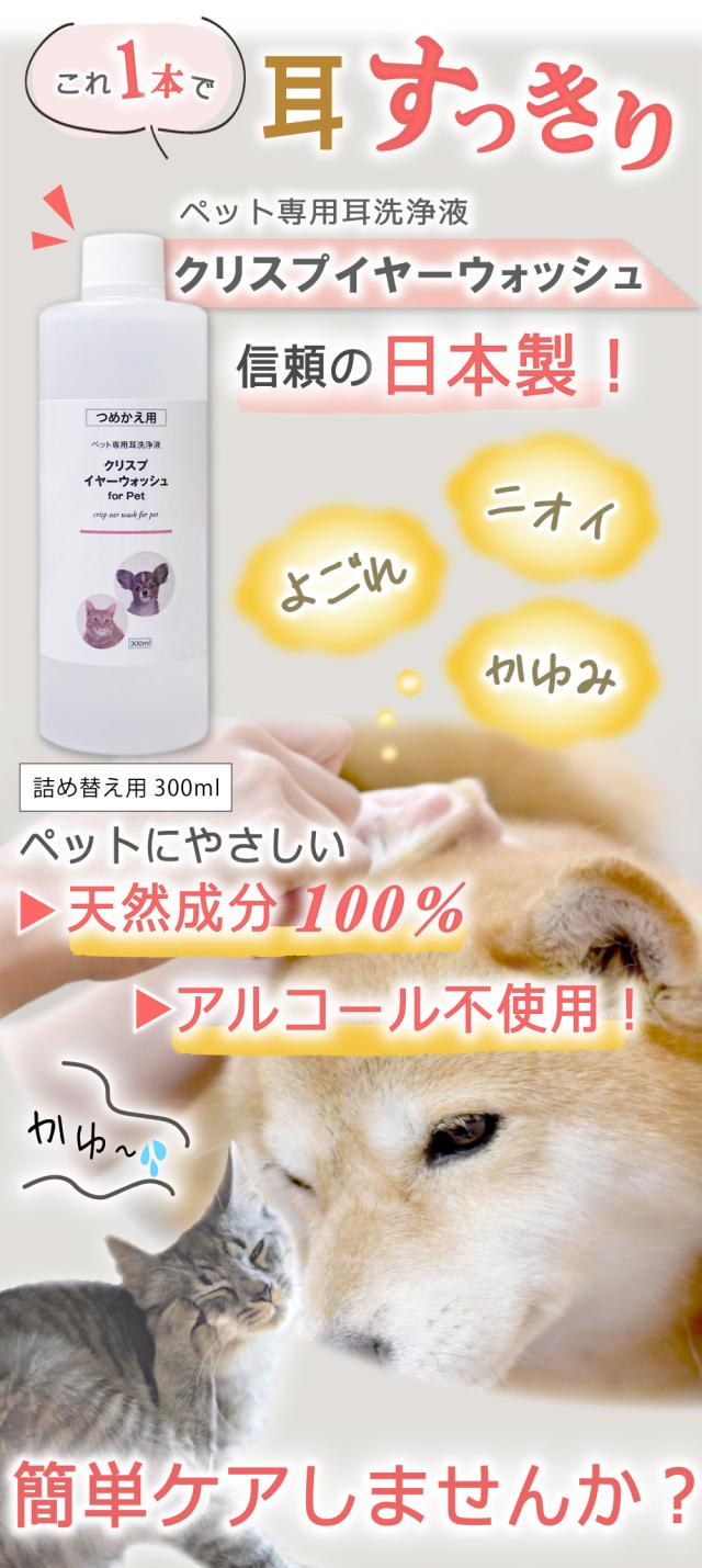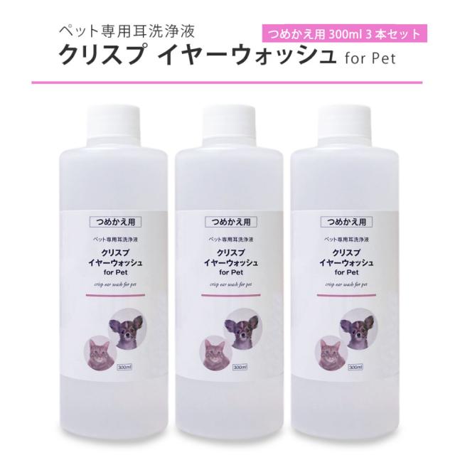犬 猫 ペット用 耳洗浄液 詰替え 大容量 日本製 [イヤーウォッシュ詰め替え用 3本セット] 無添加 ノンアルコールタイプ 日本製 天然成分100% クリスプイヤーウォッシュ 300ml×3本 ボタニカル 簡単ケア 簡単ケア