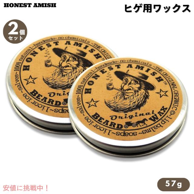 【2個セット】Honest Amish オネストアーミッシュ オリジナル ビアードワックス 2oz / 57g ヒゲのお手入れ 100%天然成分 オーガニック ORIGINAL Beard Wax