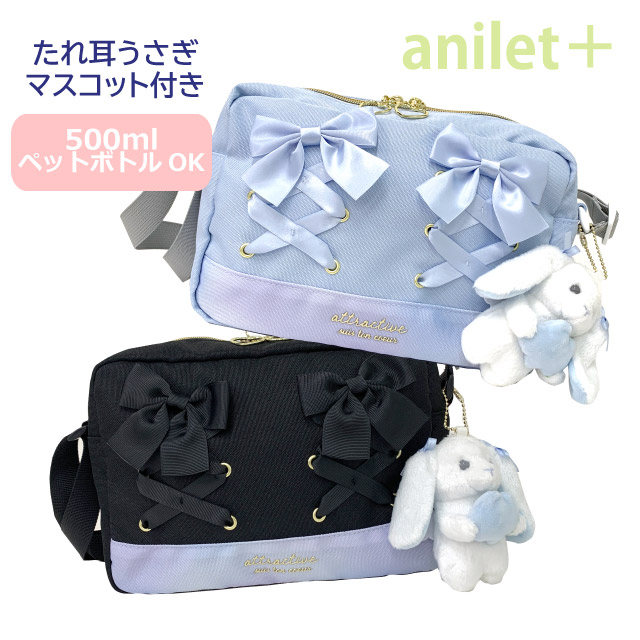 【ラッピング袋無料】キッズ ショルダーバッグ 女の子 anilet+ あみあげウサギ ヨコ型ショルダー mdw-513 ショルダーバック 斜めがけバッグ 女子 かわいい 子供用 ポシェット 小学生 小学校 おしゃれ 人気 プレゼント 黒 水色 低学年 クリスマスプレゼント ミニショルダー