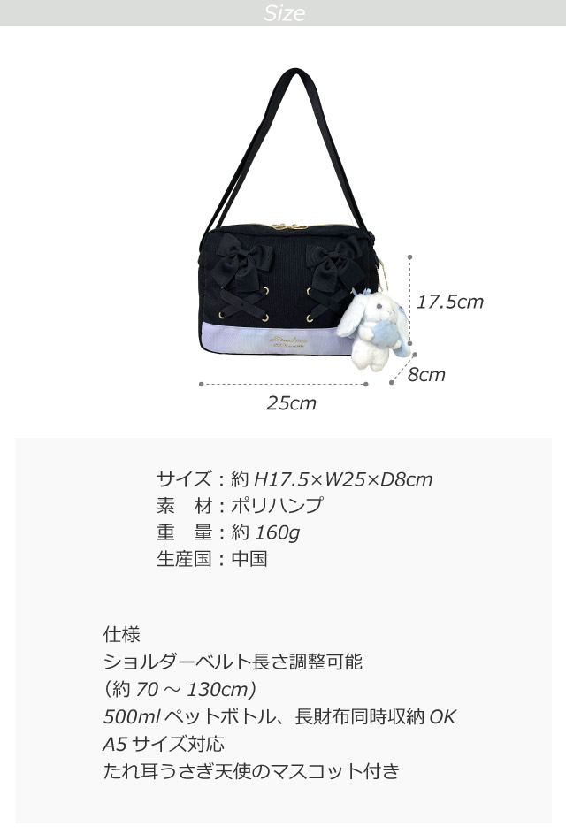 ■イメージ:おしゃれ お洒落 人気 人気 ランキング 可愛い かわいい 使いやすい ブラック 黒 水色 ブルー リボン りぼん うさぎ 天使 ウサギ グッズ 韓国 バッグ キッズショルダー キッズバッグ 韓国バッグ 流行 小型 小さめ 無料ラッピング おすすめ 流行 ラッピング対応