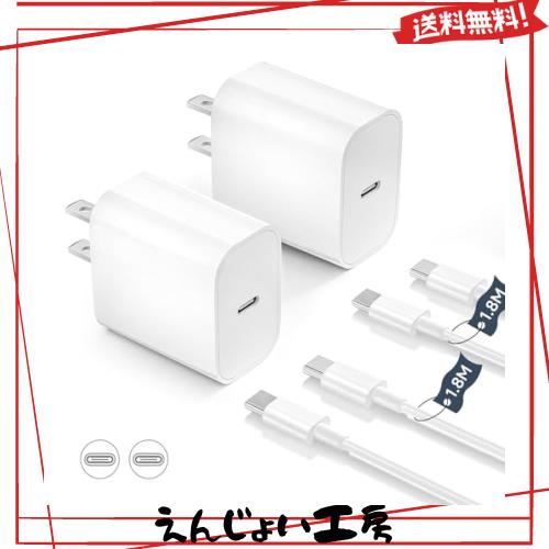 For iPhone16 iPhone15 充電器 Type-C 20W 急速充電器 PSE認証済み 【AC電源アダプター*2個 & 1.8M USB-C ケーブル*2本付き】アイフォン