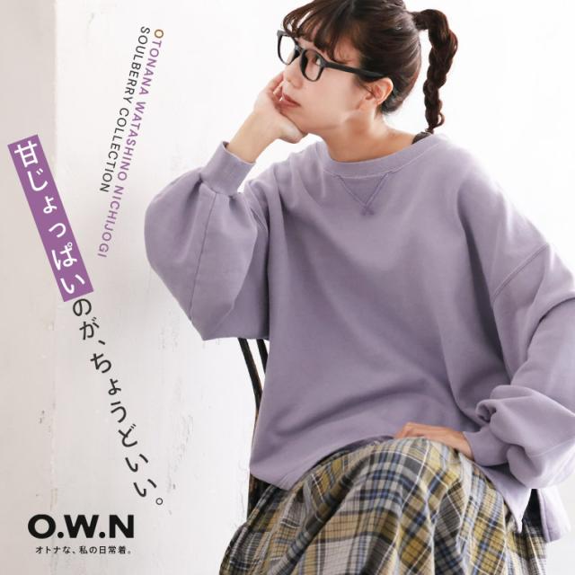 O.W.N 甘じょっぱいスウェット レディース プルオーバー スエット 裏毛 バルーンスリーブ クルーネック コットン トップス
