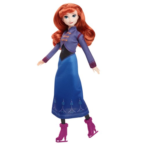 アイススケートファッションに身を包んだアナのドールです。アナは冬のアレンデールのお祭りに家族や友達とアイススケートを楽しむよう、村人たちにすすめます。