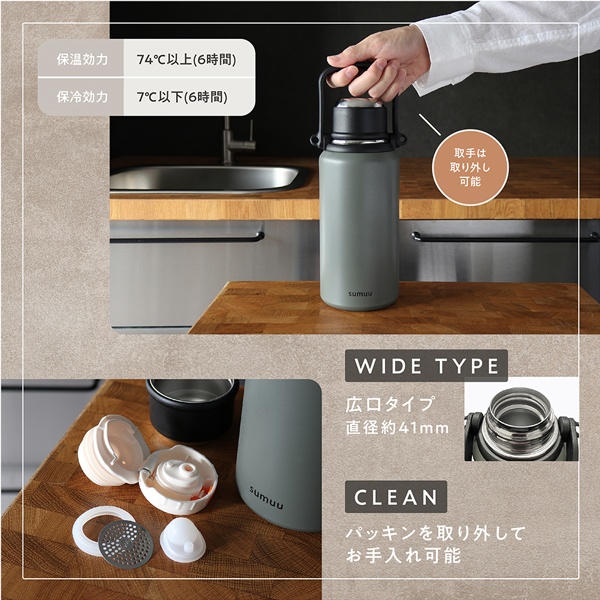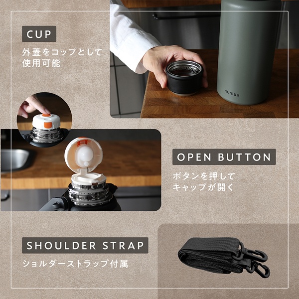 | 優れた保温・保冷力! 大容量1120mlのコップ付き水筒! | |