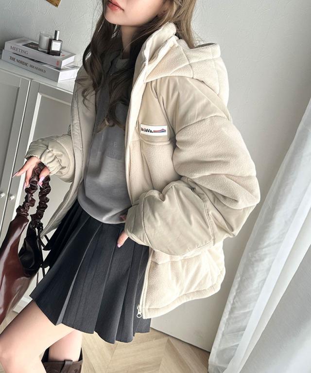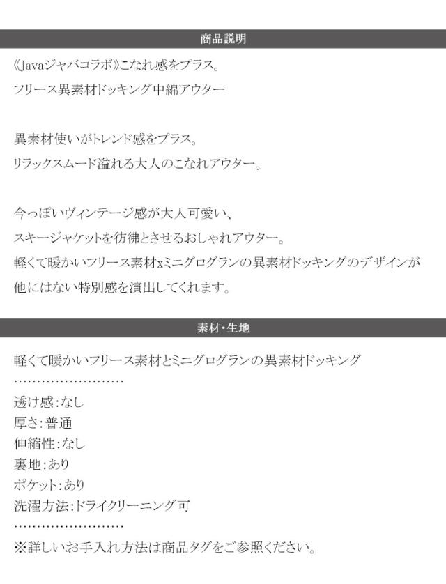 ★《Javaジャバコラボ》こなれ感をプラス。フリース異素材ドッキング中綿アウター★
