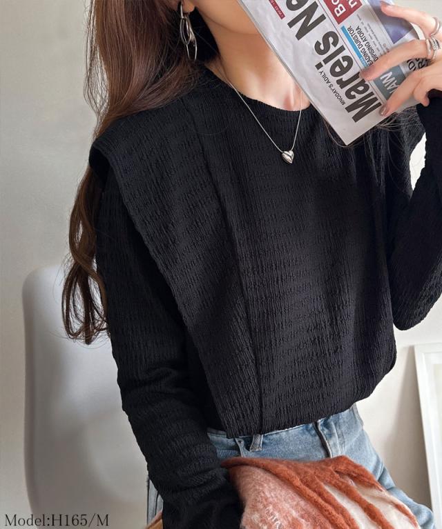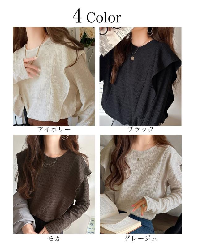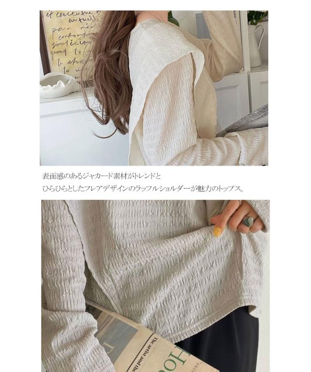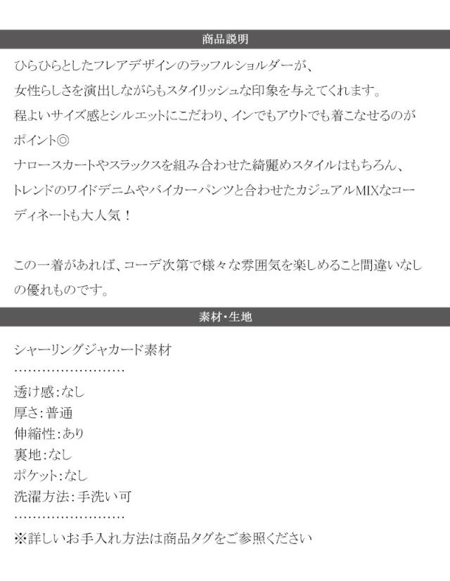 ★女性らしさとスタイリッシュさを演出する、ジャガード素材ラッフルフリルショルダープルオーバー★