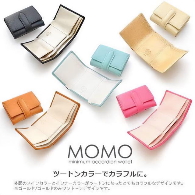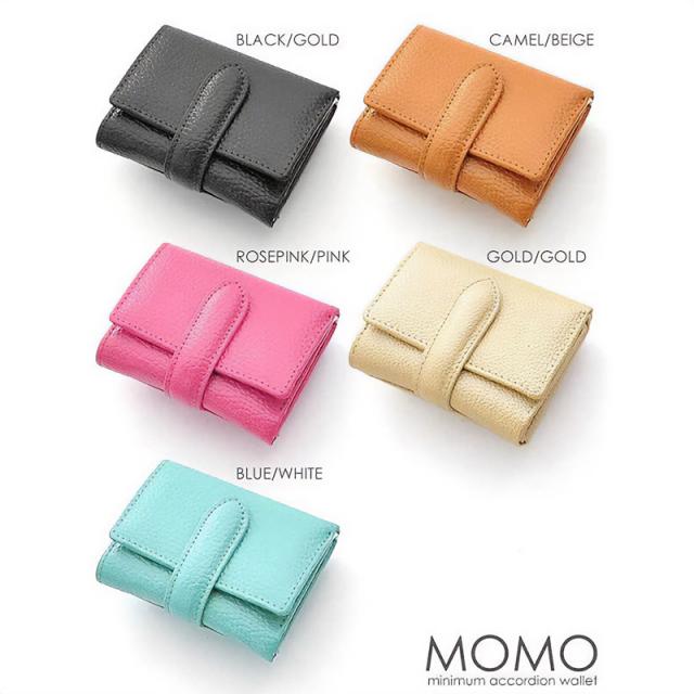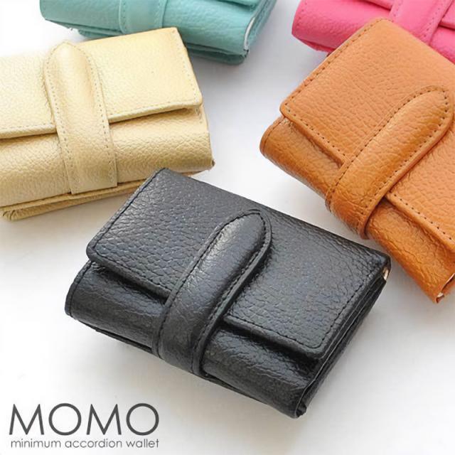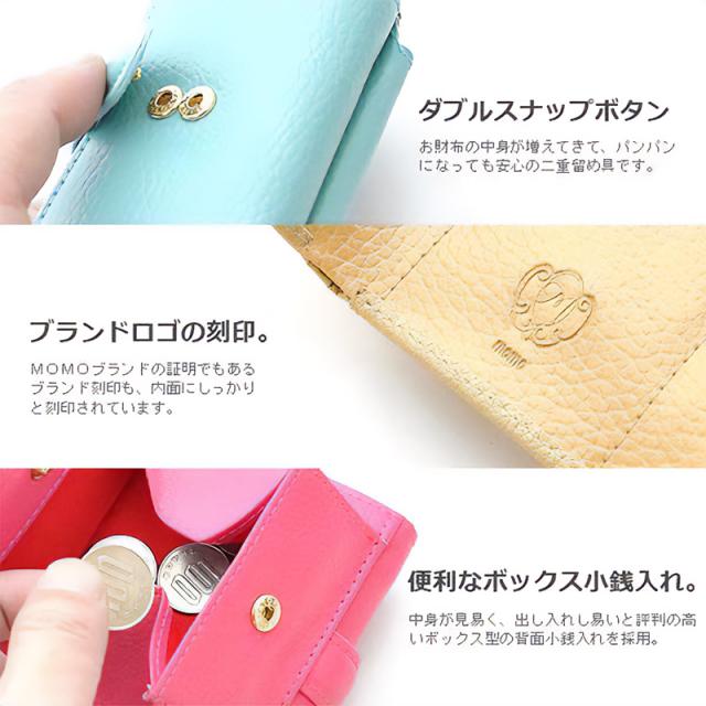 MOMO 三つ折り財布 牛革 ミニ財布 レディース エンボス ダブルスナップボタン 小銭入れ 短財布 レザー