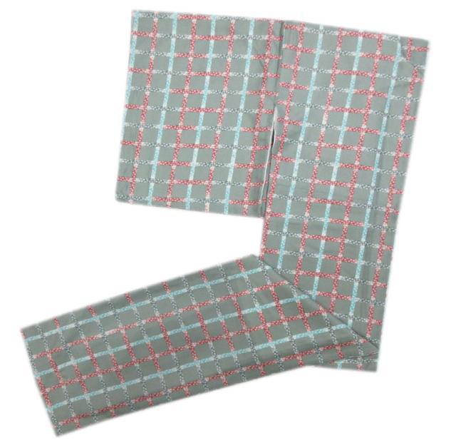 着物 袷 洗える 小紋 緑グレー地小桜格子柄 L 単品 きもの 女性用 レディース カジュアル プレタ