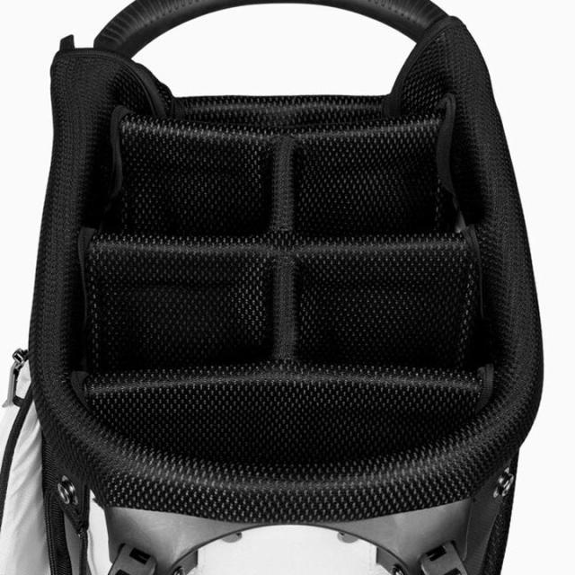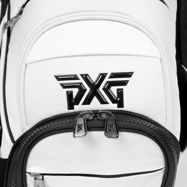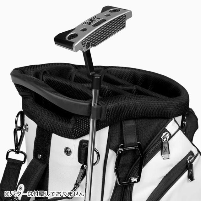 カートバッグの容量とスタンドバッグの機能性を兼ね備えたPXG エクストリームハイブリッドスタンドバッグ。口枠は6分割でポケットは14個、マグネットのパターアタッチメント、パッド入りバックパネルなど、豊富な機能を搭載しています。