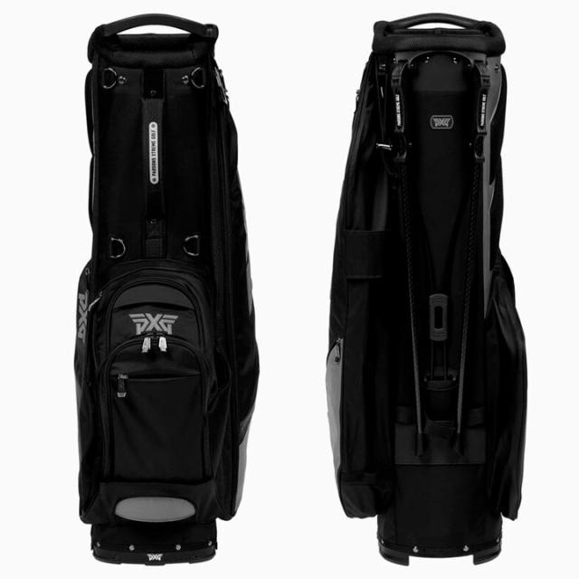 カートバッグの容量とスタンドバッグの機能性を兼ね備えたPXG エクストリームハイブリッドスタンドバッグ。口枠は6分割でポケットは14個、マグネットのパターアタッチメント、パッド入りバックパネルなど、豊富な機能を搭載しています。
