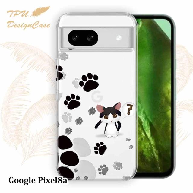 【14時までの注文で当日発送】 Google Pixel 8a ソフトケース TPU クリアケース 透明 グーグルピクセル8エー ケース おしゃれ カラフル かわいい 猫 動物 誰の足跡?