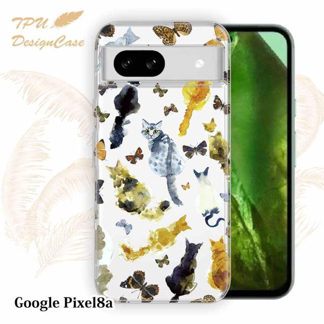 【14時までの注文で当日発送】 Google Pixel 8a ソフトケース TPU クリアケース 透明 グーグルピクセル8エー ケース おしゃれ カラフル かわいい 猫 動物 猫の背中
