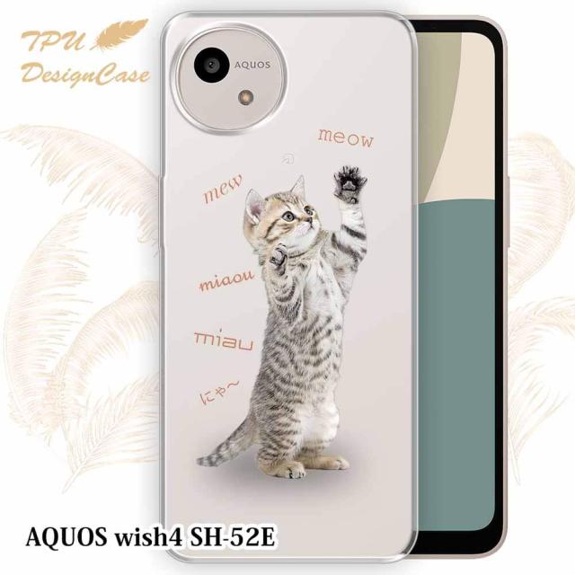 【TPUケース】 AQUOS wish4 SH-52E ソフトケース TPU クリアケース 透明 アクオス ウィッシュ4 ケース おしゃれ カラフル かわいい 猫 動物 猫の鳴き声