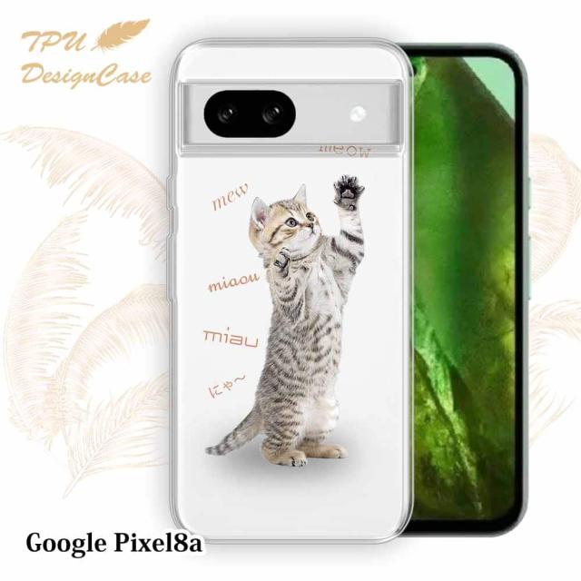 【14時までの注文で当日発送】 Google Pixel 8a ソフトケース TPU クリアケース 透明 グーグルピクセル8エー ケース おしゃれ カラフル かわいい 猫 動物 猫の鳴き声