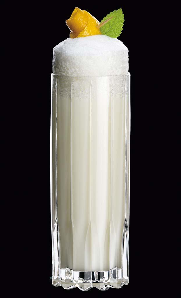 ●卵白を使ったジンサワーやウイスキーサワーのようなカクテルのふわふわしたボリュームのある泡が押し出されるよう完全な円筒形にしました。