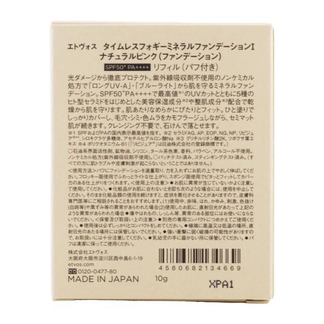 ETVOS エトヴォス タイムレスフォギーミネラルファンデーション ナチュラルピンク リフィル パフ付 10g SPF50+ PA++++[ギフトラッピング対応]