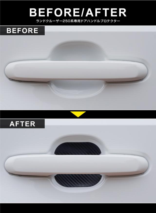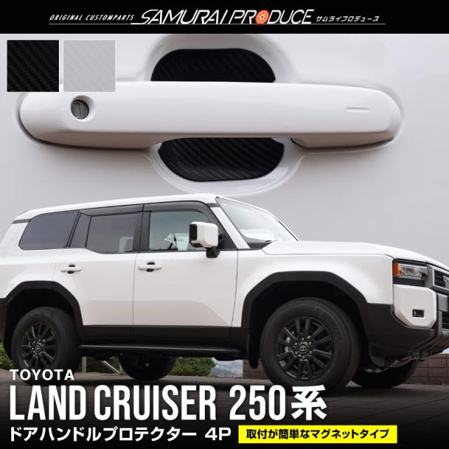 ランドクルーザー250 マグネット装着タイプ ドアハンドルプロテクター フロント・リアセット 4P カーボン柄 選べる2色 ブラック ホワイト ランクル250 専用 カスタム【メール便発送】