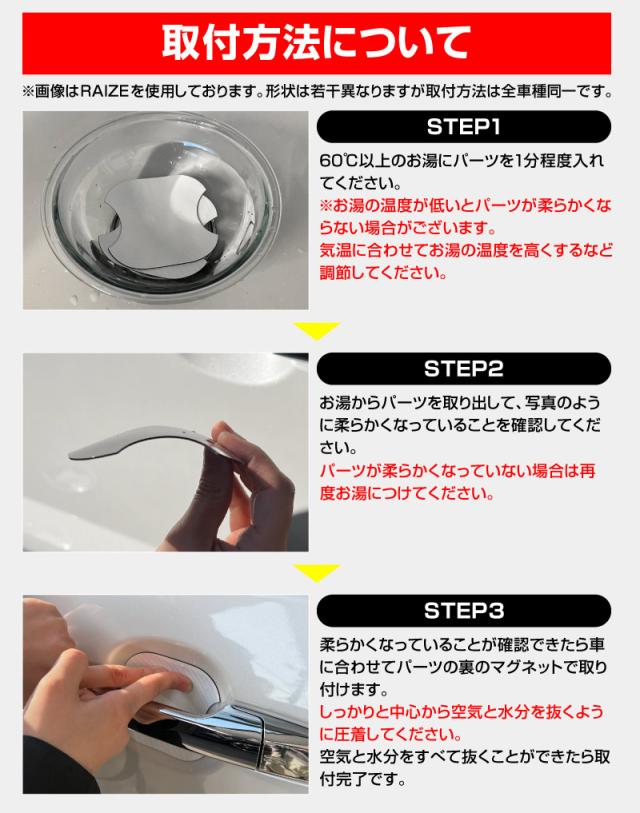 よくある粘着式ではなく当店オリジナルのマグネット装着タイプなのでお湯で柔らかくして貼り付けるだけで簡単!