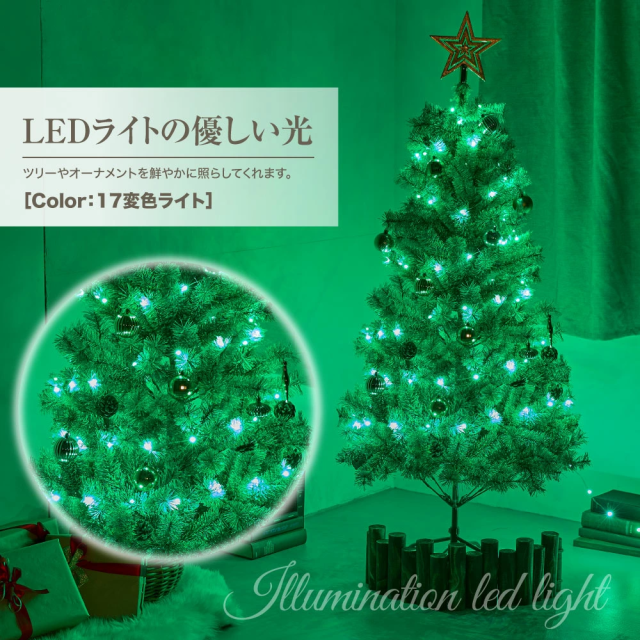 2.100球のLEDライトは、ひとつひとつが明るく鮮やかに光ります。