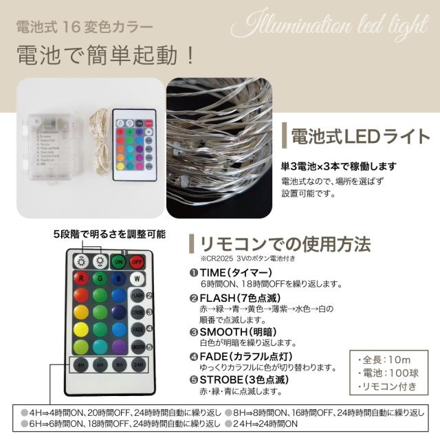 イルミネーション ライト LED 電池 100球