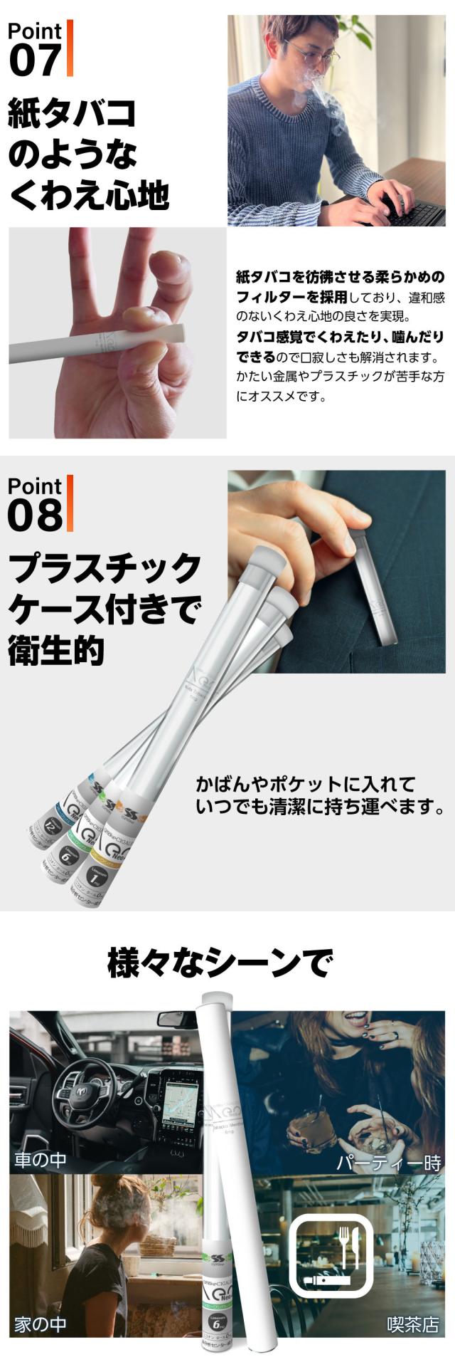 - 禁煙中の知り合いから勧められて購入しましたが、なかなか感覚良いです。通勤時に片道3本の紙タバコを吸ってましたが、初日は1本でも問題なし!少しづつ減らしてみようと思ってます。