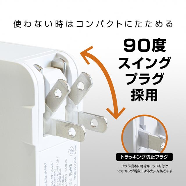 | 小型サイズながら使わないときはコンパクトにたためる90度スイングプラグを採用していますので保管の際かさばらず、持ち運びの際は他のものを傷つける心配もありません。 |