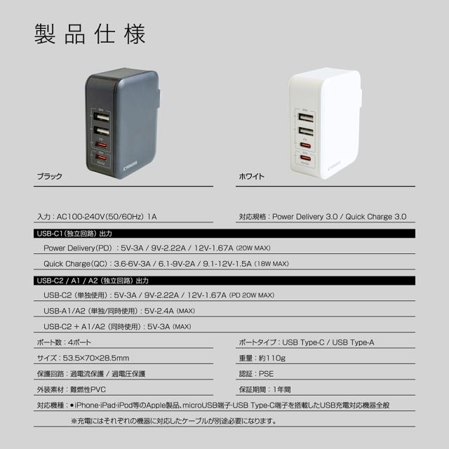 | 対応規格 | Power Delivery 3.0 / Quick Charge 3.0 |