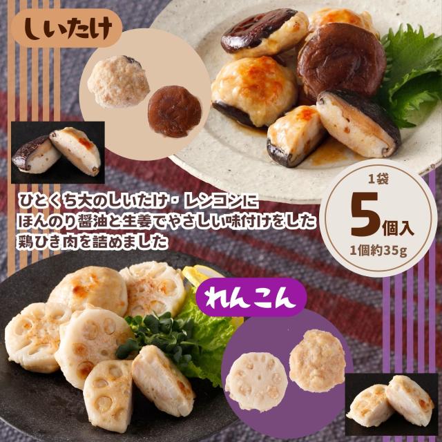 冷凍 肉詰め 2種 しいたけ れんこん 各15個 1個35g 1kg 送料無料 鶏 ひき肉 鶏肉 椎茸 シイタケ 蓮根 レンコン 焼くだけ お弁当 食品 おかず 冷凍食品 おいしい 便利 タイパ 簡単調理 時短 おつまみ 惣菜 ギフト パーティー