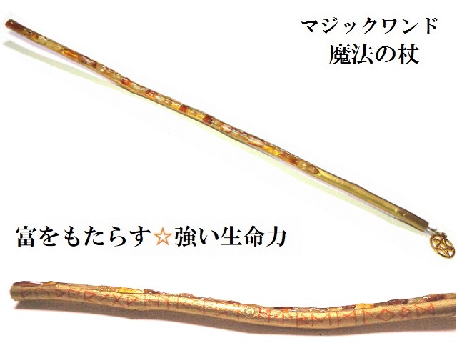 富をもたらす・強い生命力パワー・健康と長寿・オールマイティ運・免疫力UP・抵抗力UP・浄化し癒しへとつなげる★アンバー・琥珀★ルーン文字★魔法・魔術★魔法の杖★木製・ウッド★細★マジックワンド★ヒーリングマジックワンド★パワーストーン★護符(霊符)
