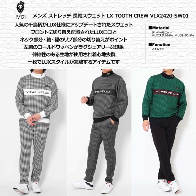 V12 ゴルフ メンズ 長袖 スウェット LX TOOTH CREW VLX2420-SW01 千鳥格子 ダンボールニット 【新品】TCBR ゴルフウェア おしゃれ スエット トップス V12GOLF OCT2