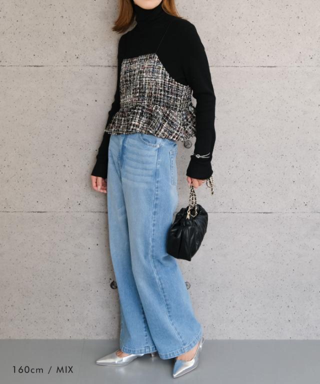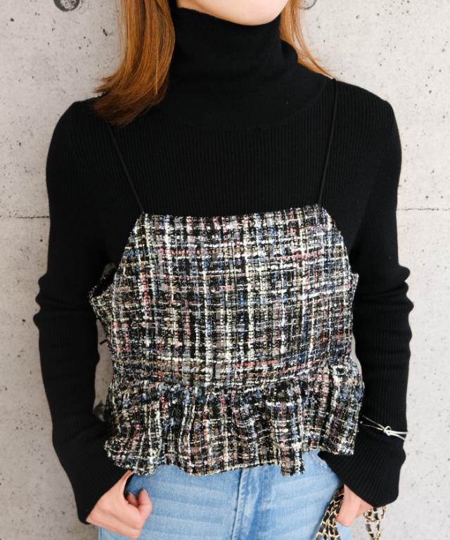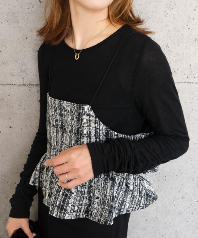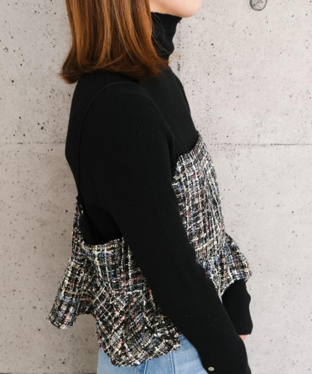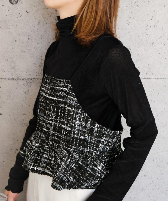 クラシカルな雰囲気のツイード素材のビスチェ