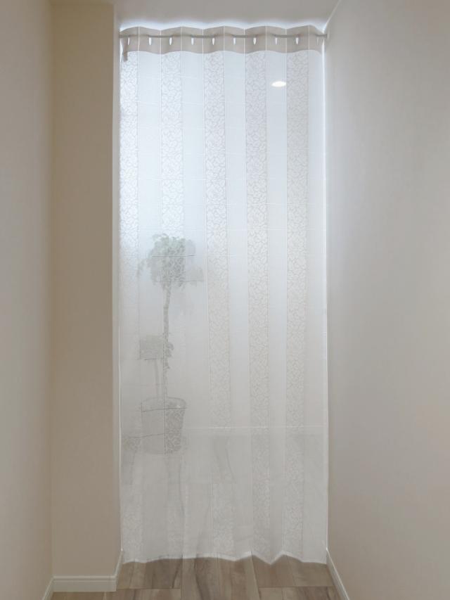 ●花とストライプ調のデザインが絶妙な透け感を演出し、目隠しや間仕切りにも使えます。