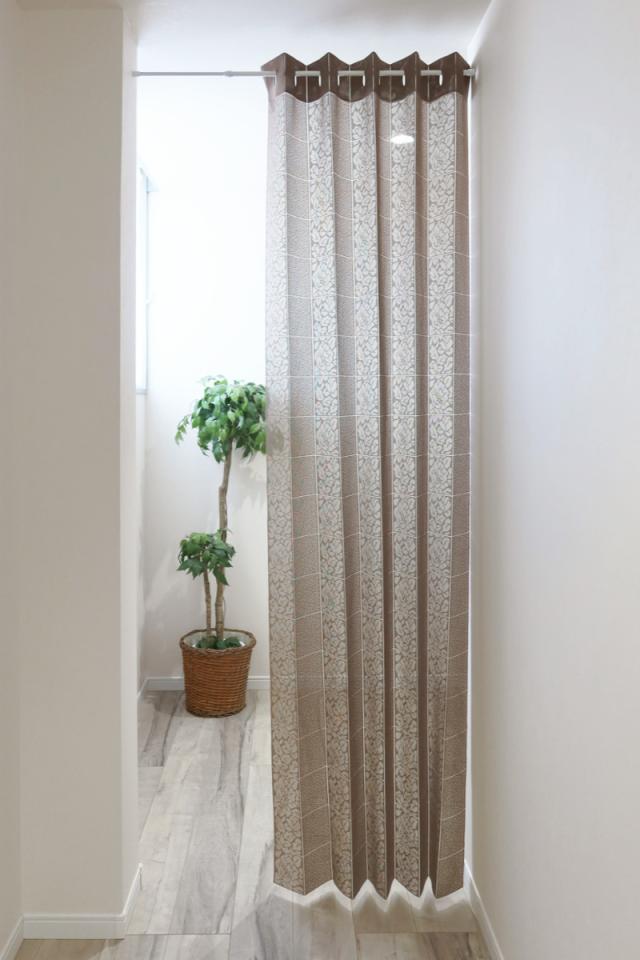 ●つっぱり棒で簡単に設置する事ができて、サッと畳めるので出入りの邪魔になりません。
